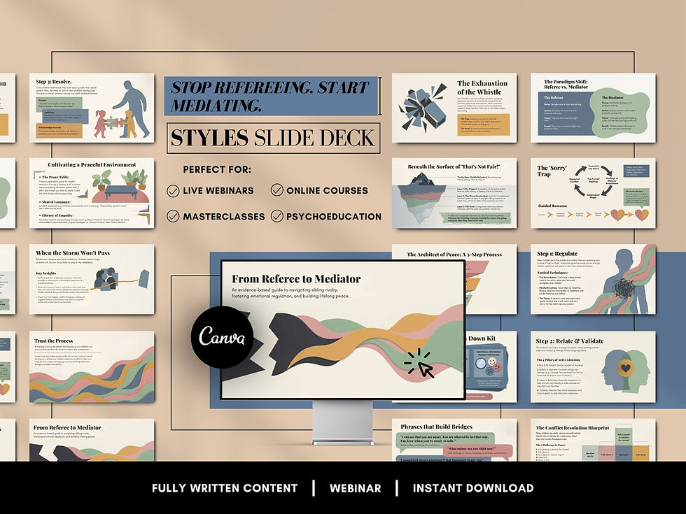 The Sibling Peace Project Slide Deck and Referee to Mediator Slide Deck are also included in the Library.
